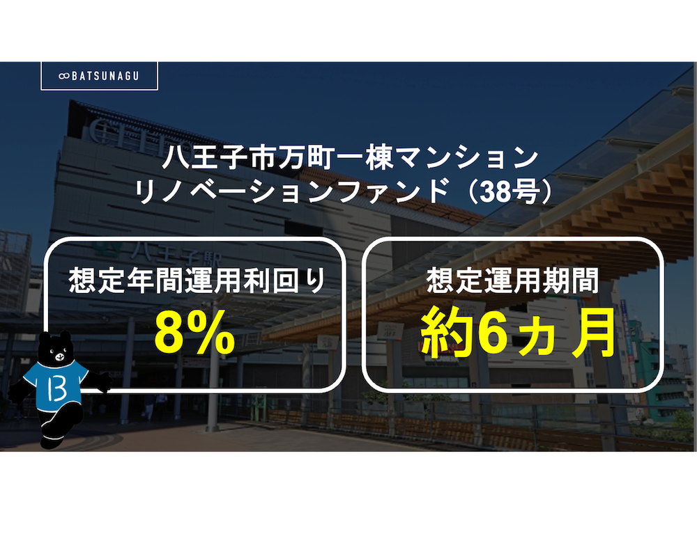 | 物件名 | 八王子市万町一棟マンションリノベーションファンド(38号) |