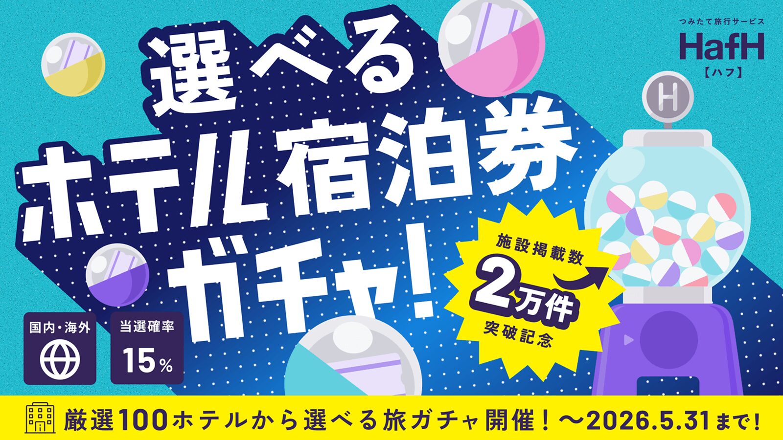 2025年5月時点、HafHでは国内外の人気ホテルが予約できて、提携施設はなんと15,000以上!