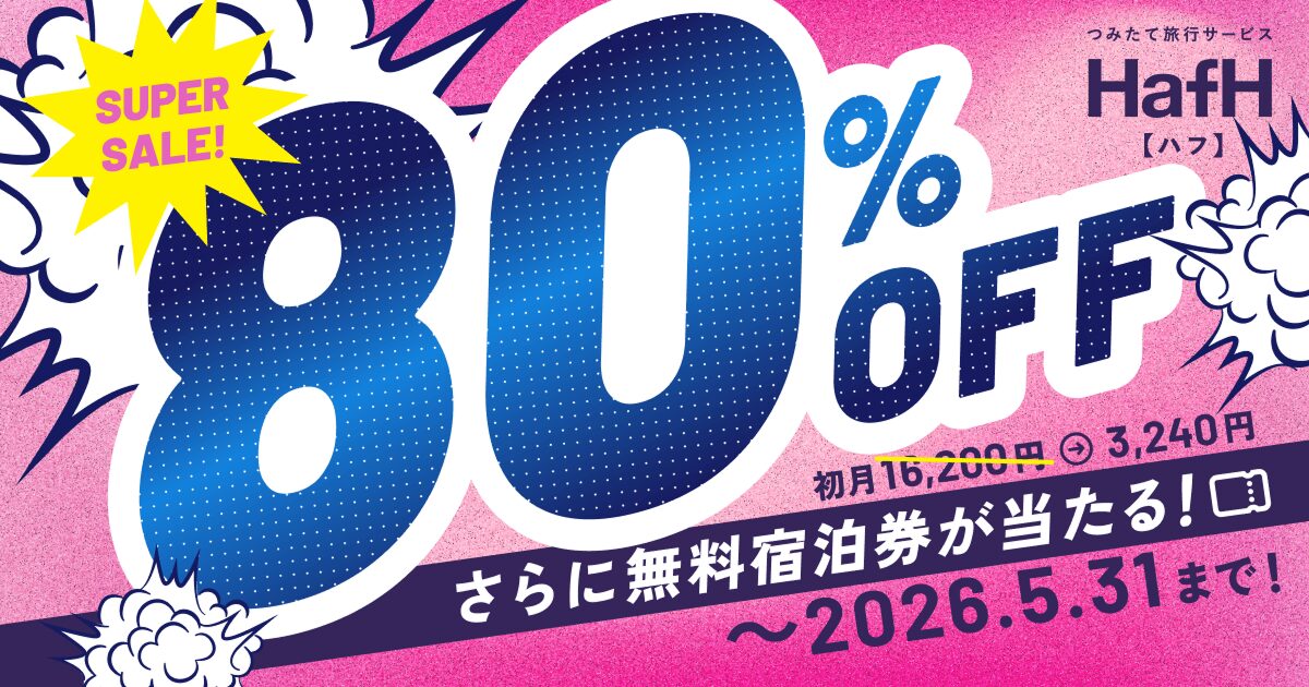 現在、HafHでは3月26日から5月31日までの期間で、「初月80%OFFキャンペーン」を開催中🙋♀️