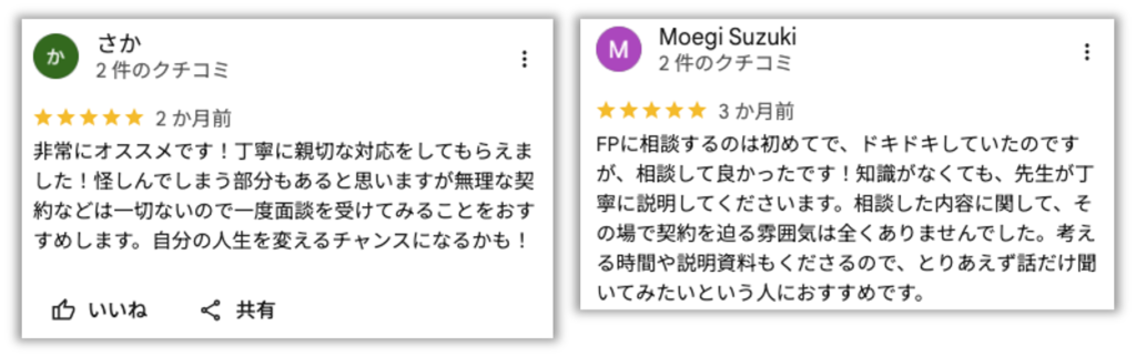 担当FPさんのプロフィールや口コミは事前に確認しておくと安心です✊