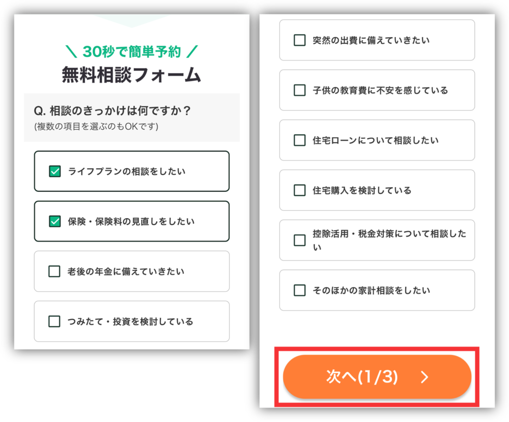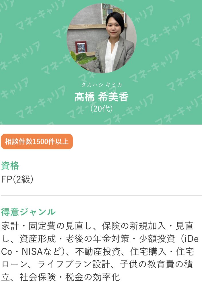 もしプロフィールを見て、自分が相談したい内容が含まれていない場合は、事前に担当FPの変更も可能です🙆♀️