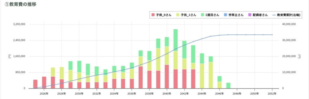 マネーキャリアなら、お子さんの人数や年齢に合わせて、「いつ・どのくらいのお金が必要か」をわかりやすく整理してくれます!
