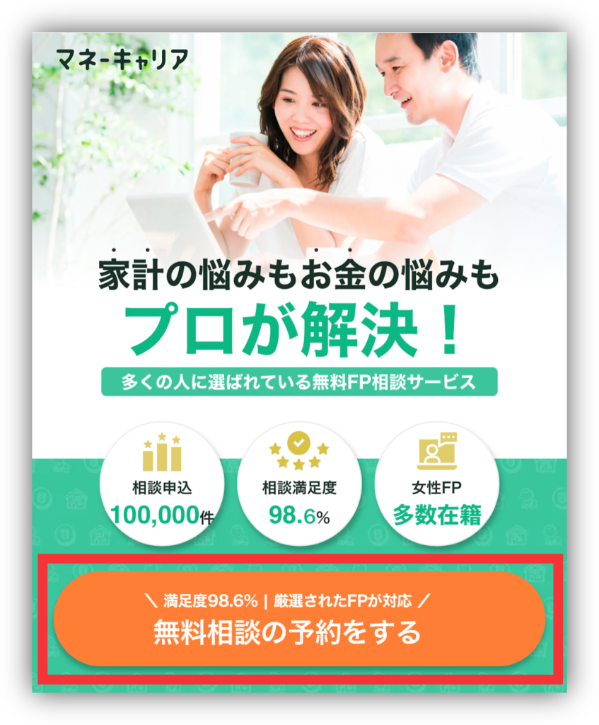 将来に備えて家計を見直したい人は、厳選されたFPさんに何回でも無料でお金の相談ができる「マネーキャリア」がオススメ!
