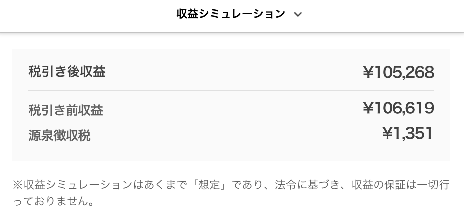 実際に、17号ファンド(想定利回り16%・運用期間5ヶ月)に10万円投資した場合、5ヶ月後に5,000円以上の配当金がもらえる計算(税引後)🙆♀️