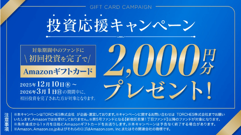 現在、トーチーズでは「投資応援キャンペーン」を開催中です!